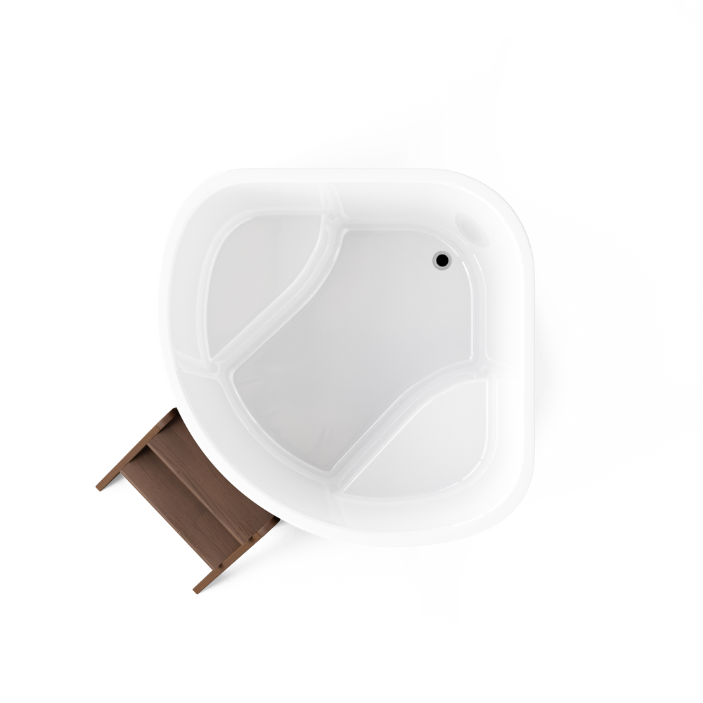 wellmia® Corner 160 Cold | Eis-Badefass Set mit Thermodeckel, Holzleiter und Ablagefläche | 1,6 x 1,6